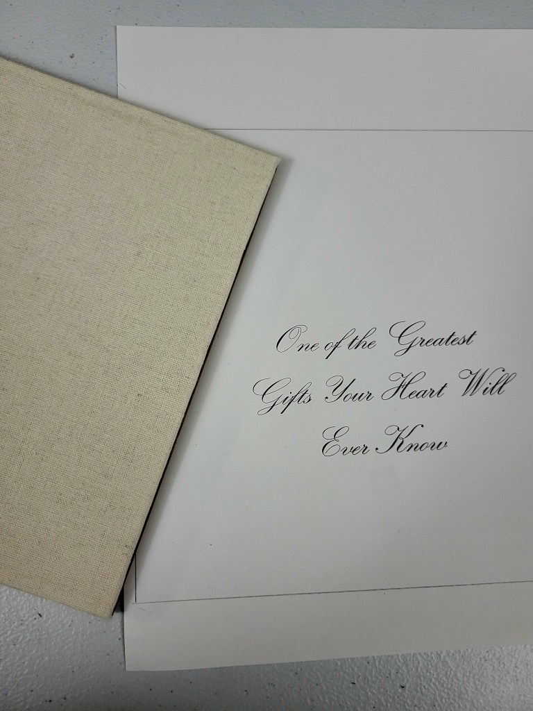 I do recommend plugging in the glue gun to warm up at this point. The first thing you will need to do is take the back of the Shadow Box out and place it on the paper over the quote so that the quote is centered, low enough to put the scrabble tiles, and high enough that the confetti won’t cover the words. Then, trace the square from the back of the box on the paper using a pencil. If you are having a difficult time finding this alignment with the paper under the square you can put the paper on top to make lines of where you want it to sit before tracing the square onto the paper. Once the square is traced onto the paper, cut it out.